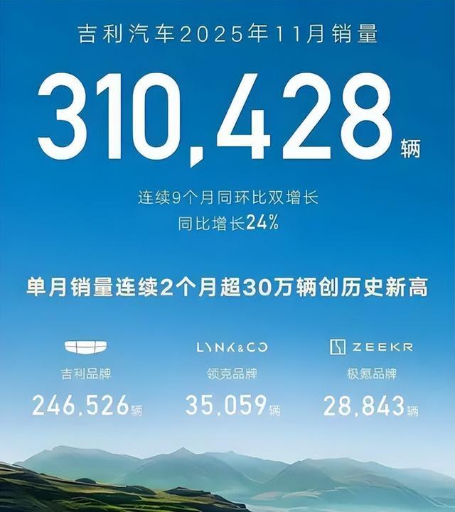 传统车企阵营的竞争同样激烈。吉利汽车前11个月累计销量达到278.8万辆,完成上调后300万辆目标的92.93%。其新能源车型销量已突破153.4万辆,渗透率超过50%。