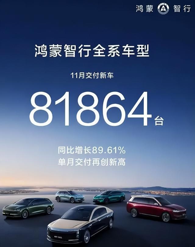 值得一提的是,鸿蒙智行作为一股聚合性力量,从年初月销约3.5万辆,到11月单月突破8.2万辆,增长幅度超过两倍,全年销量有望突破55万辆。