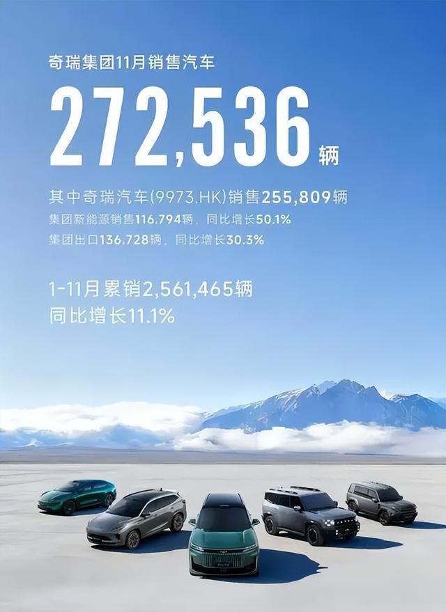 奇瑞集团前11个月累计销量为240万辆,而年度目标约为300万辆,完成度约为80%。其新能源车型前11个月累计销量已突破81万辆。