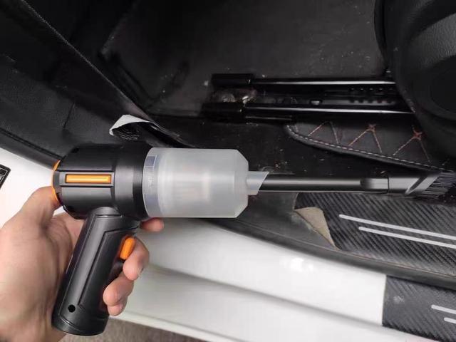 第二款是无线充电车载吸尘器,车内卫生清洁全靠它!平时开车难免会掉点零食渣、灰尘,尤其是座椅缝隙里的灰尘,用抹布根本擦不干净。我之前买过有线的吸尘器,用的时候还要插点烟器,线特别短,很多地方都吸不到。后来换了无线充电的,续航能力很强,充一次电可以用好几次,而且吸力很大,座椅缝隙里的灰尘、地毯上的零食渣都能吸得干干净净。我买的这款大概120块钱,还送了好几个吸头,不同的地方用不同的吸头,特别方便。