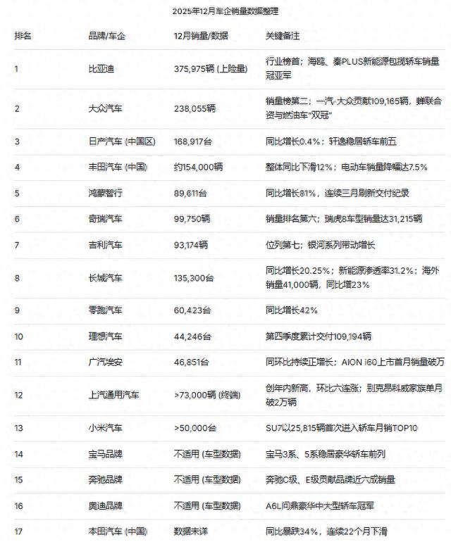 - 2025年12月各家产销数据公布,透视着汽车行业新变局!