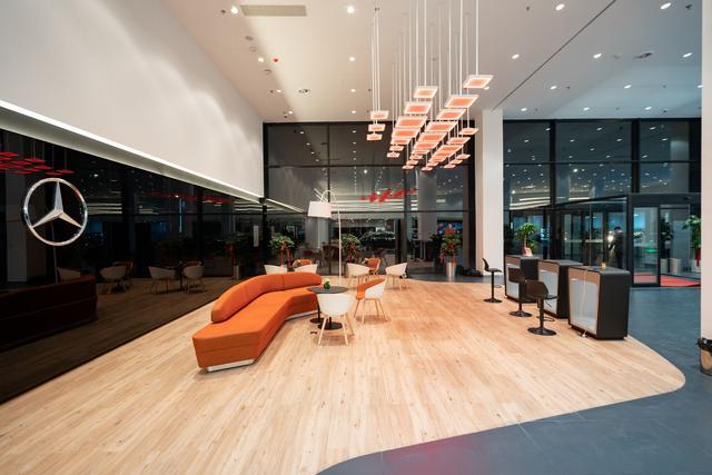 青岛利之星于2017年建立占地面积约2000多平方米的奔驰4S店,2026年完成升级改造搬迁。新项目占地4978平方米,建筑6380平方米,展厅面积1573平方米,展厅设有15个展位,售后车间规模为ME L2 + BP L2,其中预检工位3个,维修工位15个,钣金工位4个,铝制车身修复工位1个,喷漆工位6个,烤漆房2个,硬件设施十分完善。
