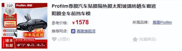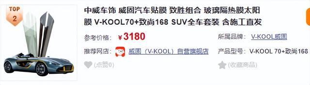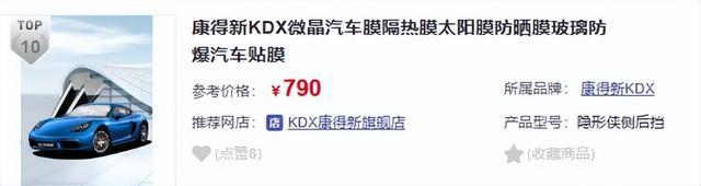 10.康得新微晶系列,图中价格是侧后挡的,全车在1280,前挡透光率73%,太阳能总阻隔率44%。