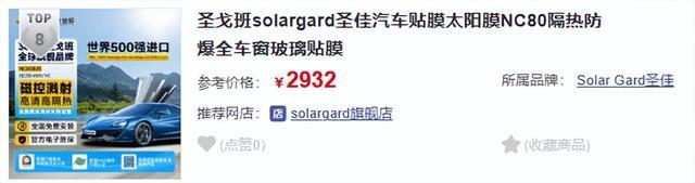 8.圣佳NC系列,比较经典的陶瓷膜型号,前挡透光率78%,太阳能总阻隔率45%,价格也比实际参考价格低。