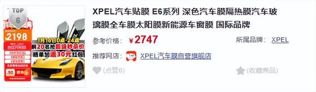 6.XPEL隔热膜E6,纳米陶瓷,前挡透光率72%,太阳能总阻隔率50%,实际价格也比这个要低。