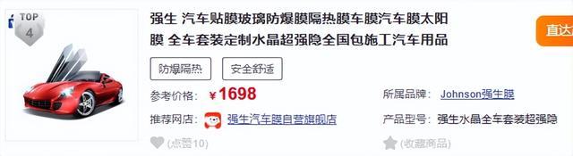 4.强生膜水晶系列,前档透光率90%,综合隔热率31%(非太阳能总阻隔率),实际价格比图上更便宜一点。