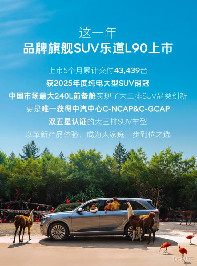 乐道L90作为家庭市场主力军,上市5个月累计交付43,439辆,荣获年度大型纯电SUV销量第一。该车型还获得C-NCAP、C-GCAP双五星认证,是首款以双五星成绩通过中汽中心2024新规程认证的大三排SUV。