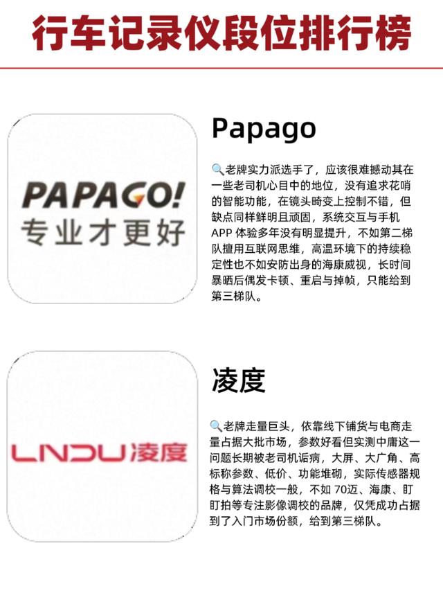 老牌走量巨头,依靠线下铺货与电商走量占据大批市场,参数好看但实测中庸这一问题长期被老司机诟病,大屏、大广角、高标称参数、低价、功能堆砌,实际传感器规格与算法调校一般,不如 70迈、海康、盯盯拍等专注影像调校的品牌,仅凭成功占据到了入门市场份额,给到第三梯队。
