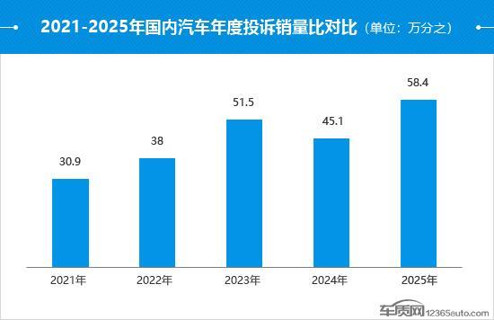 从年度投诉销量比数值变化来看,大体呈现出攀升态势。在经历2024年数值小幅回落后,2025年迎来大幅增长,达到近五年来的峰值,整体投诉销量比表现开始出现转差迹象。