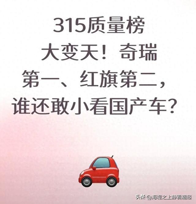 315质量榜!奇瑞第一、红旗第二,看谁还敢小看国产车?
