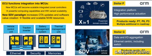 ST寄予厚望的STELLAR系列改用高性能ARM内核,主要目标市场是动力传递和网络领域,耐160度高温是ST最大特色,此外就是PCM相变内存的使用。博世是ST最主要客户。