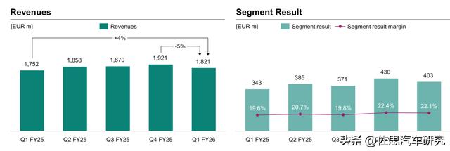 2024自然年4季度-2025自然年4季度每季度英飞凌汽车业务收入与营业利润率