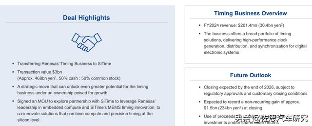 2026年2月,为缓解亏损,瑞萨计划以30亿美元出售timing部门给美国SiTime。