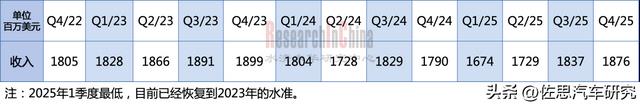 NXP汽车业务最近13个季度收入统计
