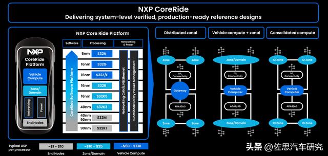 NXP的CoreRide,主要用来构建SDV软件定义汽车网络架构,2024年有推出强大的S32N55,是全球首颗5纳米非座舱与ADAS的汽车芯片,主要用于网关或中央计算平台。2026年则有更强大的S32N79推出。
