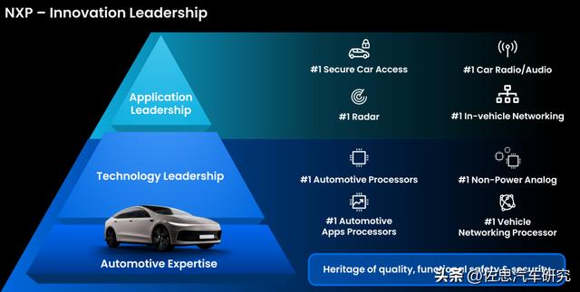 NXP在汽车钥匙、收音、音频放大、毫米波雷达、车内网络、非功率模拟、网关领域均为全球第一。2024年陆续加大UWB领域投入,首次将UWB用于奥迪量产轿车,也首次将UWB用于电池管理。2024年还推出i.mx94系列应用处理器,用于安全连接领域。
