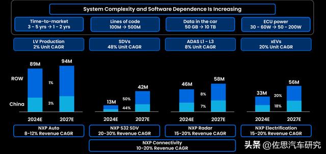NXP认为四个最具增长潜力的领域,分别是S32系列MPU,雷达收发器,电气化和无线互联。