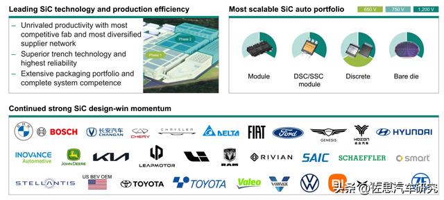 长安、奇瑞、零跑、理想、上汽、小米、小鹏、宝马、丰田、现代起亚都采用英飞凌的SiC模块。