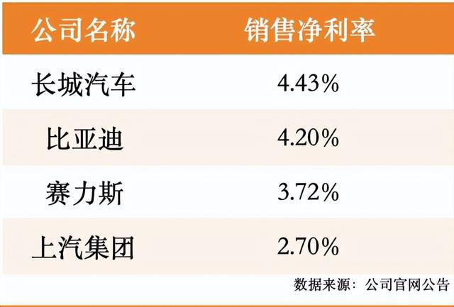 最新盈利能力:长城汽车>比亚迪>赛力斯>上汽集团