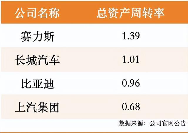 最新营运能力:赛力斯>长城汽车>比亚迪>上汽集团