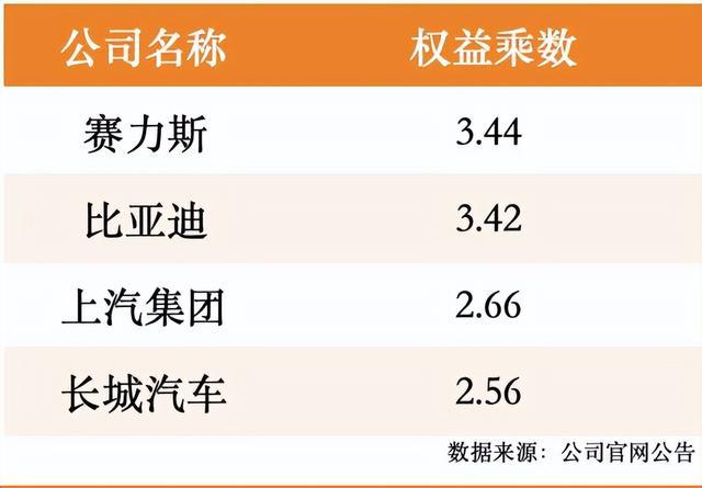 最新财务杠杆:赛力斯>比亚迪>上汽集团>长城汽车