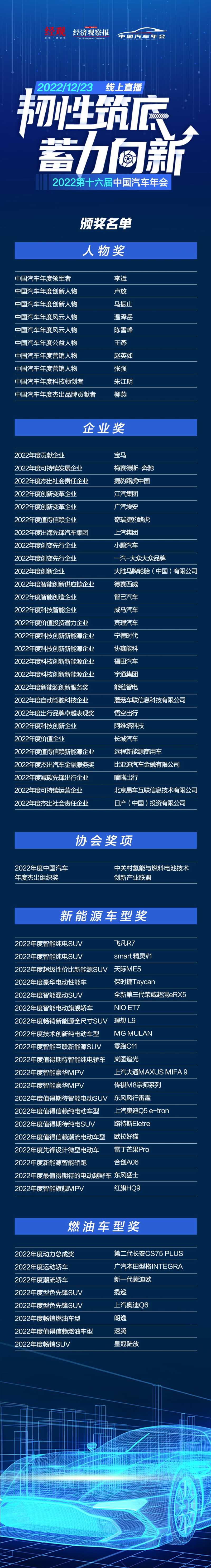 2022年12月23日,由《经济观察报》主办的“韧性筑底,蓄力向新 2022第十六届中国汽车年会”全平台上线播出。