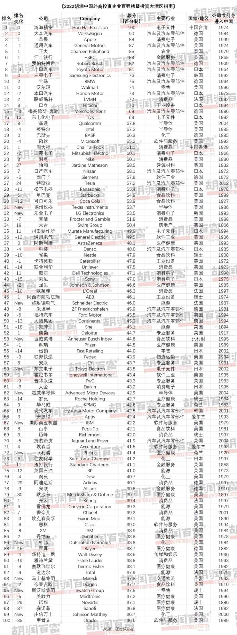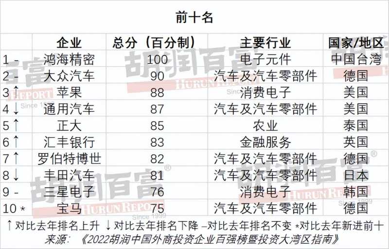 12月21日,胡润百富发布了《2022胡润中国外商投资企业百强榜暨投资大湾区指南》。