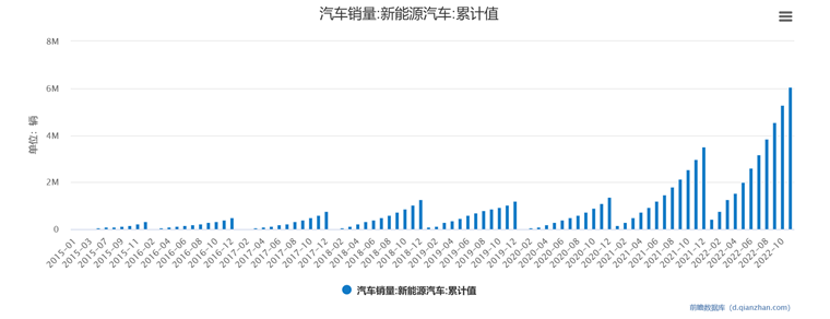 但在另一边,11月新能源乘用车零售销量达59.8万辆,同比增长58.2%,环比增7.8%,从年初至今保持了趋势性上升走势。