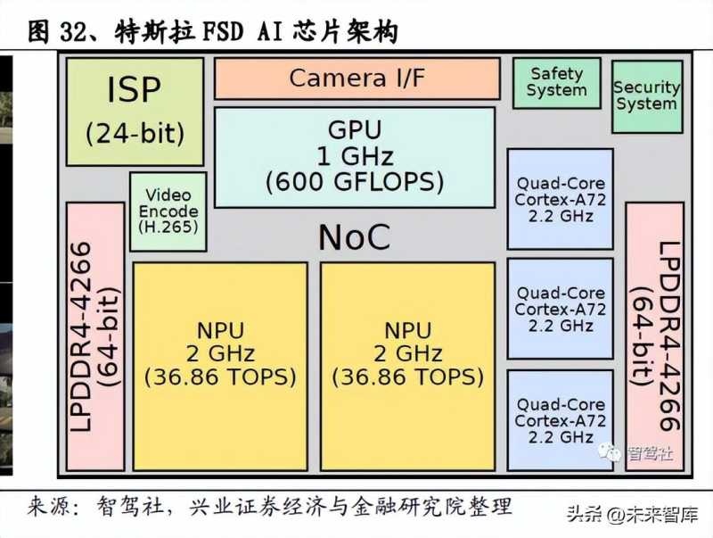 特斯拉于 2016 年启动 FSD 芯片项目,并于 2019 年实现量产。基于自身算法特性,特斯拉对该芯片进行了针对性优化,达到 了软硬一体,可以最大程度的发挥芯片算力,其它车企多采用英伟达、华为、高 通等厂商的芯片进行系统开发,因此算力利用效率相对较低,通常需要比特斯拉 更高的算力已达到相同的效果。