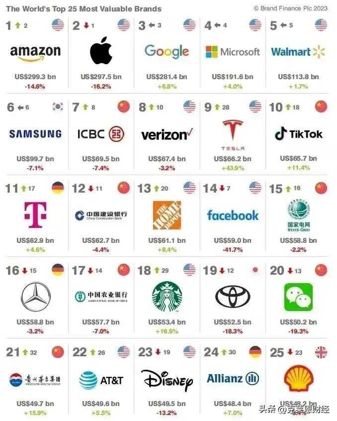 全球最有价值的25个品牌:美国上榜12个,德国3个,中国呢?