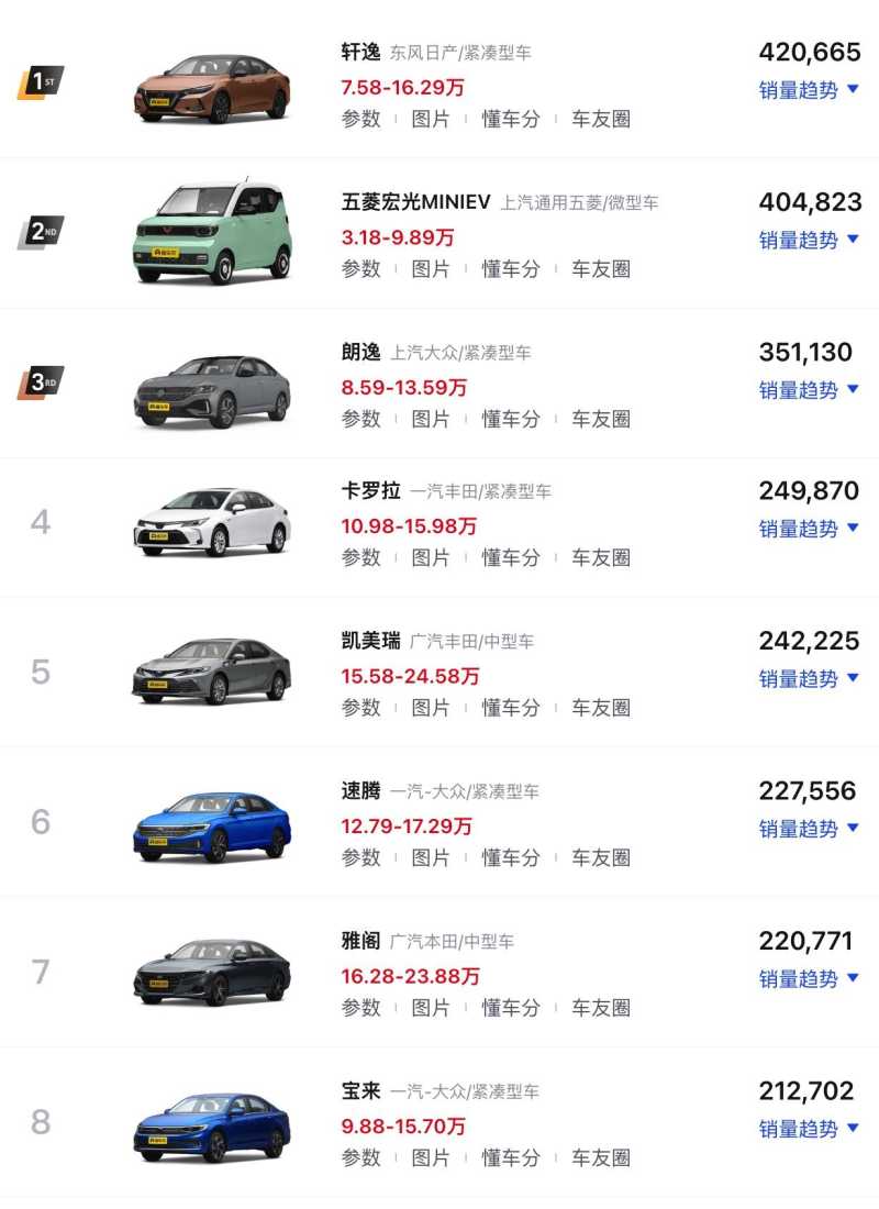- 轿车卖爆了!1-10月销量榜单出炉 29款销量过十万 轩逸第五