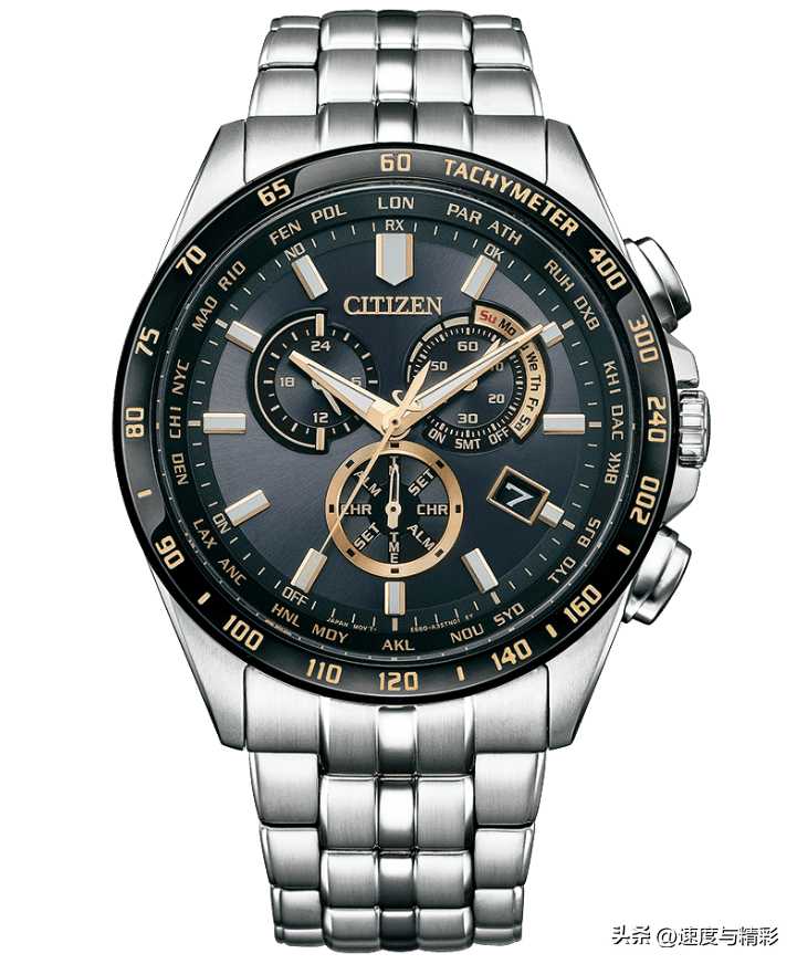 入选理由:这款手表堪称西铁城光动能电波手表里面的常青树,上市这么多年来销量经久不衰,超级钛合金机身表带,蓝宝石玻璃,防水100米,手表功能一应俱全。