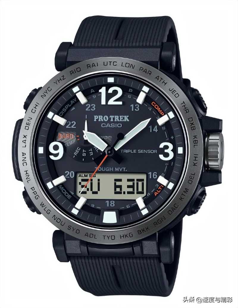 入选理由:PRO TREK户外专业手表,搭载方位传感器、气压传感器、高度传感器、温度传感器,强悍的户外运动利器,更加难能可贵的是支持光动能电波,防水100米可佩戴游泳,各种手表功能一应俱全。