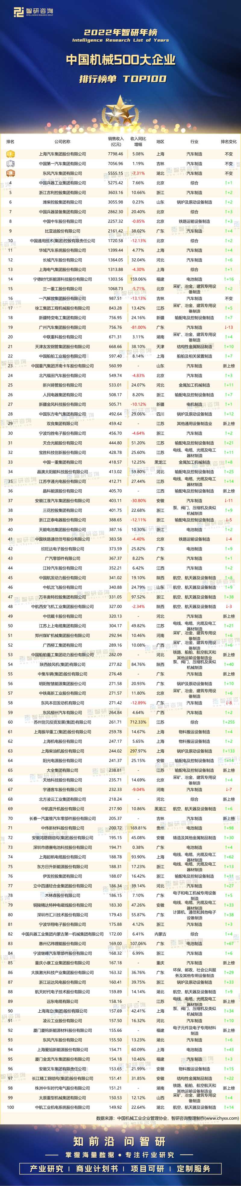 2022年中国机械500大企业排行榜(附年榜TOP100详单)