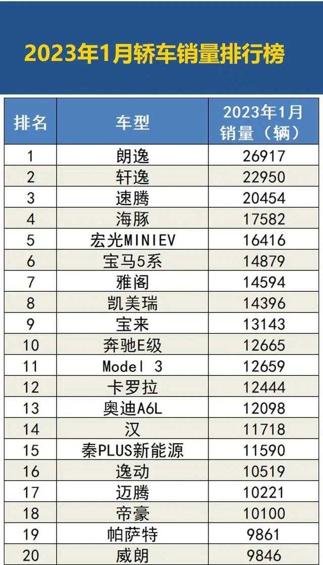 23年1月汽车销量榜,前20名国货仅5名,海豚亮眼,Model 3勉强破万