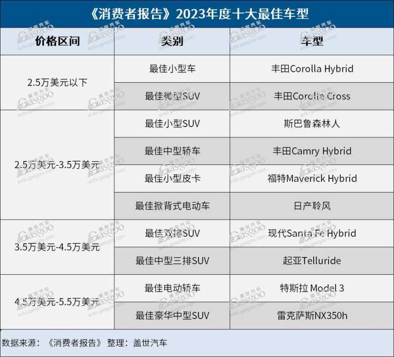 《消费者报告》2023年度汽车品牌榜和十大最佳车型出炉