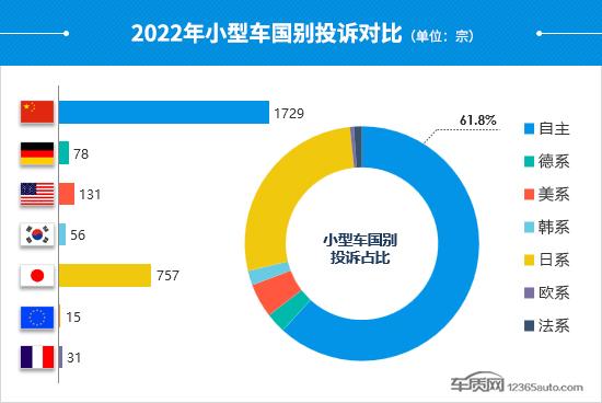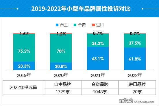 据车质网数据显示,2022年自主品牌小型车投诉量为1,729宗,较2021年下降了44.1%,但投诉占比仍保持在六成以上,连续第二年占据国内小型车的投诉主体。随着自主品牌在小型车市场持续投放纯电动车型,未来一段时间内的投诉占比或将持续保持在高位。