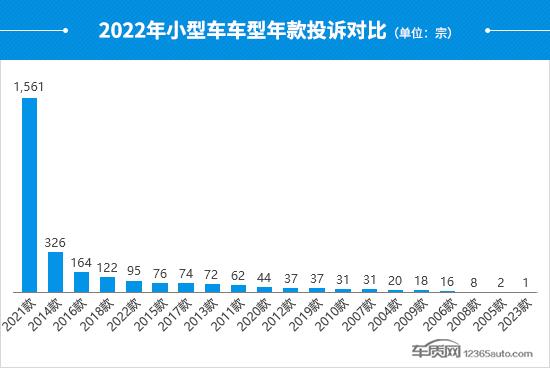据车质网数据显示,在2022年国内小型车投诉中,2021款车型仍占据了大部分投诉份额,投诉量虽环比有明显下降,但仍保持着过千宗的体量。2022款车型排名有所提前,但投诉量与2021年基本持平,投诉多来自于部分自主品牌新能源车型。
