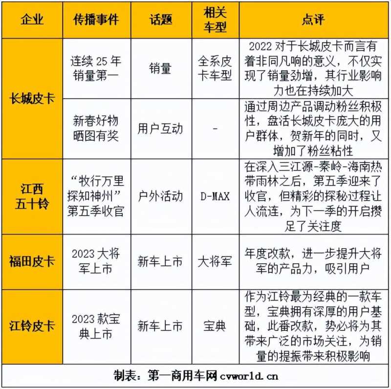 2023年1月,以下皮卡品牌传播事件中,哪一个更有影响力?