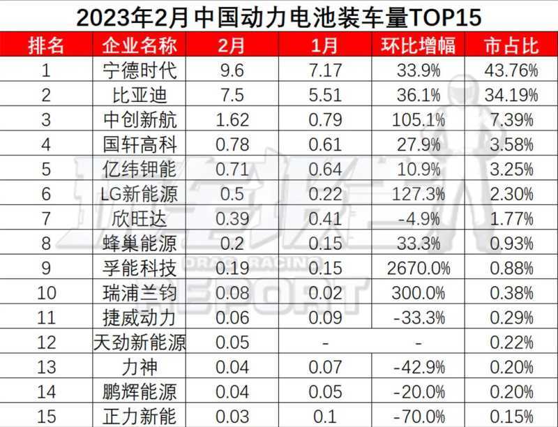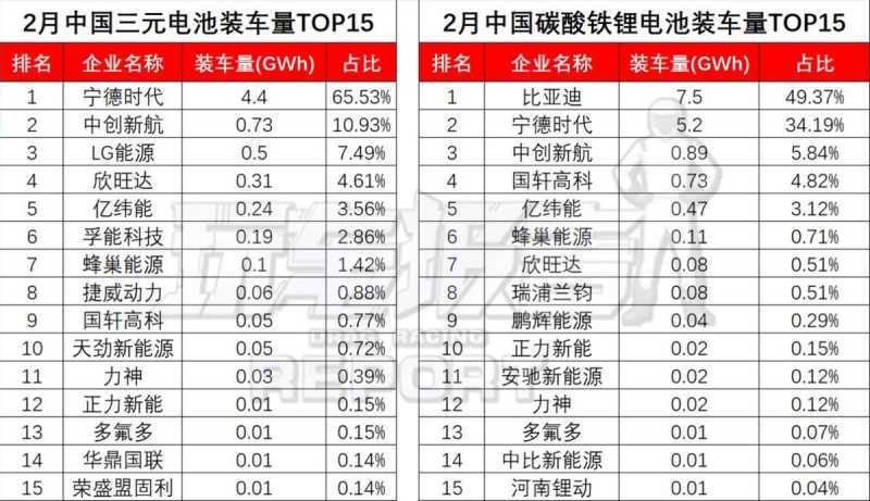 随着2月份新能源汽车销量排行榜的出炉,动力电池装车量企业排行榜也随之公布,下面就和玩车弟一起来看看吧。