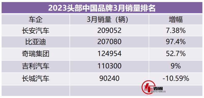 日前,随着长安、长城等汽车厂商先后公布3月的销量情况,头部中国品牌的排名也随之出炉:长安单月销量破20万辆,超越比亚迪,重新夺得销冠。比亚迪销量也破20万辆,夺新能源销冠。奇瑞冲进前三,吉利与长城销量也持续回暖。下面,就跟《车壹圈》来进一步了解一下具体的情况吧。