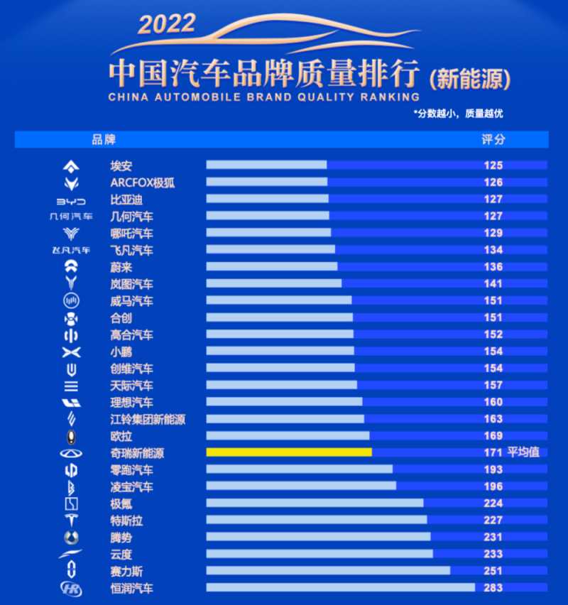 2022中国新能源汽车品牌质量排名:埃安第1比亚迪第3,上汽第几?