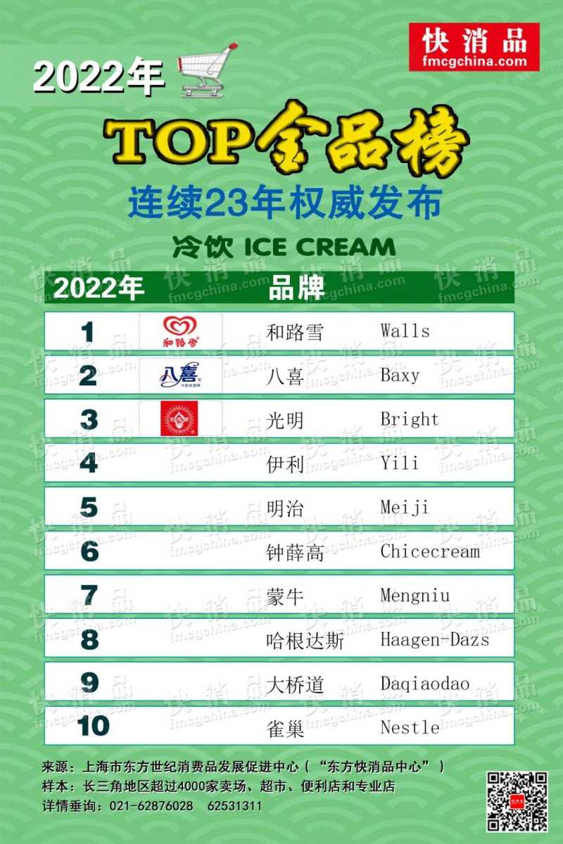 此次,《快消品》发布“2022年线下TOP金品榜——豆浆 (粉)、冷饮”,其中维他奶、和路雪分别夺得品类冠军,九阳豆坊、维维、八喜、光明等品牌登榜。