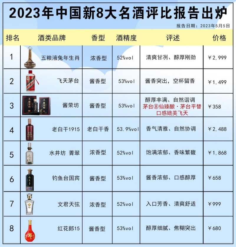 央视发布!2023年中国新8大名酒评比报告新鲜出炉!五粮液上演“王者归来”!茅台慌了!郎酒差点跌出榜单