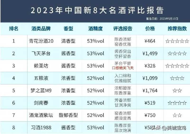 2023中国新8大名酒评选出炉,汾酒力压茅台居首,第三名黑马出击