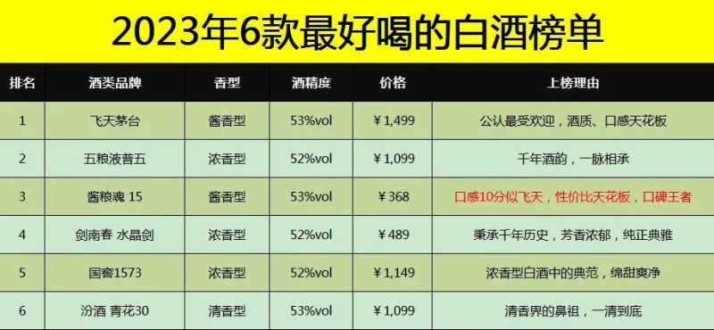 2023年最好喝的白酒榜单,第1名不虚传,第3名竟是“新晋黑马”