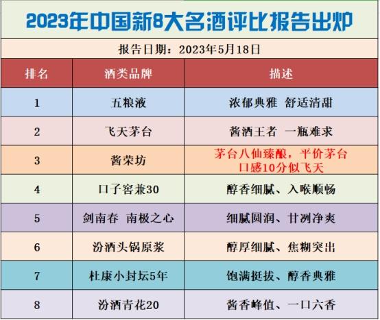 白酒协会公布白酒排名,名酒排名“重新洗牌”,茅台第一地位不保