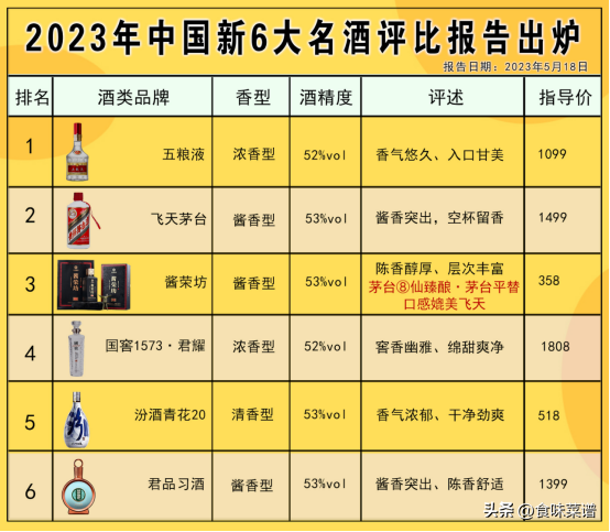 评酒发布2023新6大名酒排名,五粮液成功上位,茅台第一地位不保