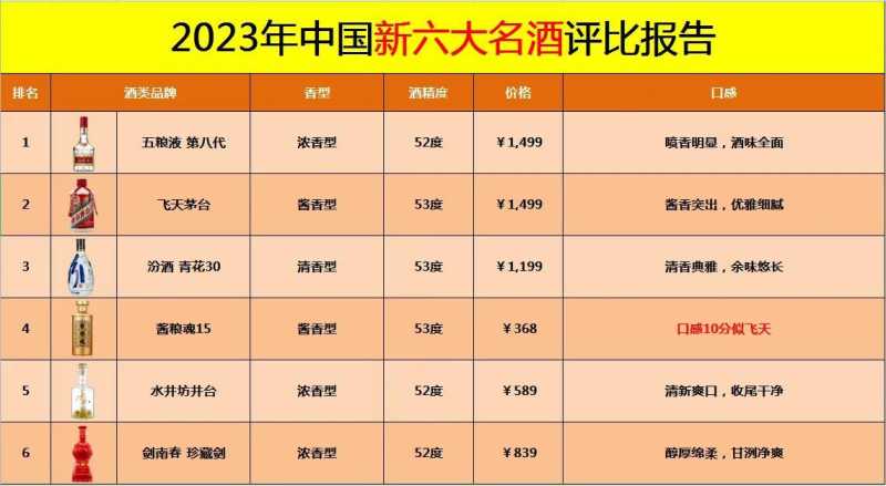 名酒前6强新鲜出炉!飞天茅台“巅峰不复”,五粮液一举夺魁