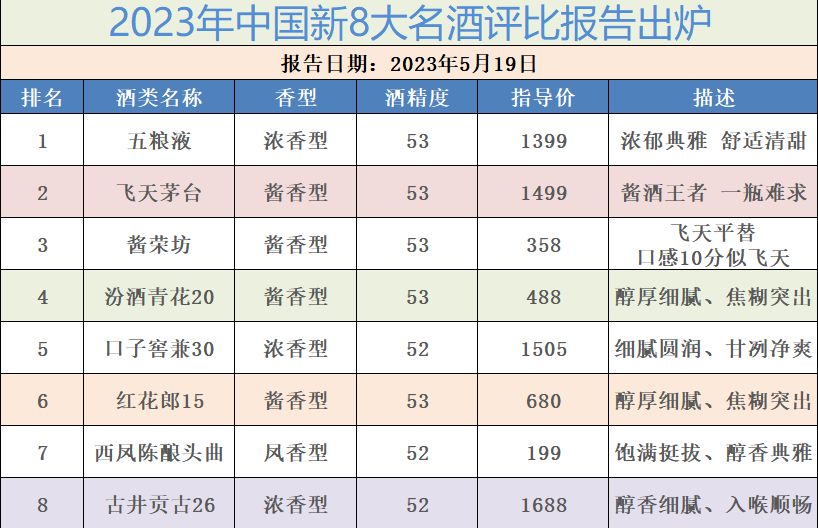 酒协发布:新8大名酒报告,名酒排名重新洗牌,茅台第一地位不保